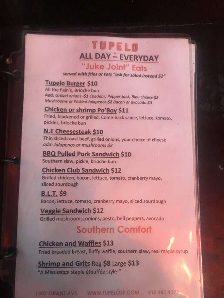 Welcome to Tupelo, a vibrant Southern music venue located in the heart of San Francisco at 1337 Grant Ave. Here, the atmosphere is alive with soulful tunes and the delectable flavors of the South, creating an unforgettable dining experience.
